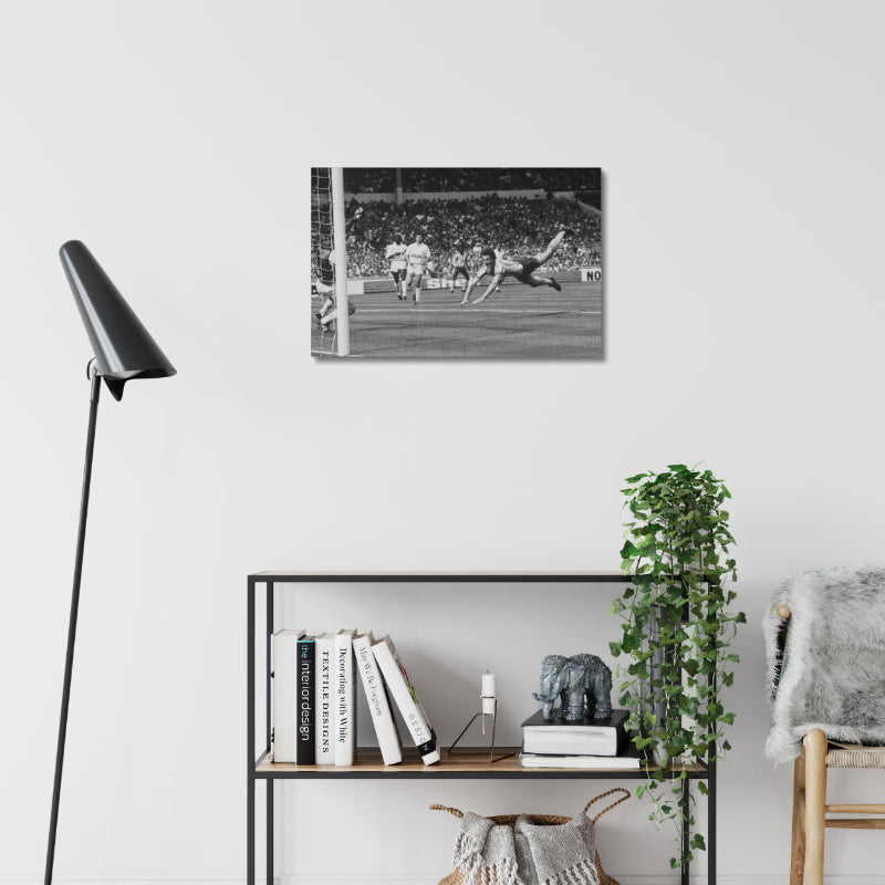 A classic photo capturing the moment when Keith Houchen scores with a wonderful diving header to level the score 2-2 during the FA Cup Final against Tottenham Hotspur. This magnificent photo also features a short description of the event within the white border, although please note that the canvas prints are borderless and therefore do not include this description. The images are printed onto high quality photo paper .